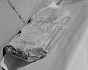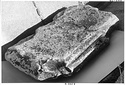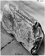 Dimensions:   P.L. 0.91, (dowel hole on bottom) 0.02; P.H. 0.128; P.W. (at top) 0.545, (at bottom) 0.48; L. (dowel on top) 0.045; W. (dowel on top) 0.009, (dowel hole on bottom) 0.01
