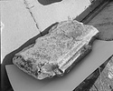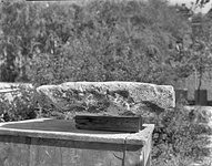Description:   Preserved height is probably close to original height, not much worn on top to judge for dowel leading. In top at 0.30m. from right side and 0.29m. from present front, 0.22m. from present back, a dowel with lead still in place. On bottom, 0.05m. from right side and 0.40m. from bottom molding, part of a dowel hole. Corner of a second dowel hole 0.30m. from right side and 0.107m. from bottom of soffit molding. Cuttings on top for reuse as a doorsill. The small size of the dowels would be unusual for a geison of a building of any size. Since so little (max. 0.055m.) of the projection in front of the molding is preserved, one cannot be sure this was a geison of a building. It may have been a crown of a monument base.