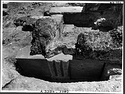 | Description: | Block now rests upside down so its original top is not visible. Both ends of block treated like right end of A 3386, i.e. rough in upper half and chamfered at front, square cut in lower half. Back of block worn by traffic before last reuse. Cf. notebook III, p, 586, for blocks of same series reused in Market of Caesar and Augustus with different system of jointing. ADDENDA 5 June 1964: When the block was moved to South Stoa II area the top could be examined. In the very middle of the top is a large dowel hole for fastening the geison (an end dowel that gripped two adjacent blocks) and a cutting for a clamp leading to the frieze backer. For sketch cf. notebook ΒΒ VII, p. 1358; for a photo cf. notebook Τ XXXIV, p. 6687. 6 February 1967: Original location in Square Peristyle: Second from interior angle triglyph block. (W.B.D. Jr.). | |