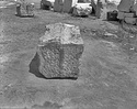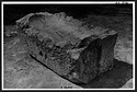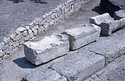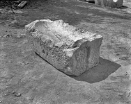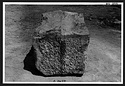 | Description: | Rim broken off, but bottom part of channel preserved on one end. Much worked down through various periods of reuse. Sides straight, flaring out at top. Anathyrosis on two edges. Pair of pry holes on one side. Fine workmanship of original period of use. Limestone. | |