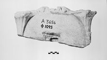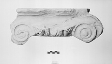 | Description: | Half missing. Three edges on echinus. Reeded bolster with a band of scale pattern in middle. Lime mortar adhering to abacus. Pentelic marble. | |