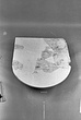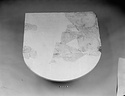 Description:   About one half preserved, mended. Horseshoe shaped slab, smooth on bottom, with a broad raised surface around the edge on top into which are sunk depressions also of horseshoe shape, the rounded side pointing outward.