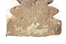 | Description: | Cover tile with antefix, broken off at opposite end. Battered along bottom edges. Antefix surface very worn and chipped along edge. Slip preserved in places. Iron yellow stain on top surface. Obtuse pitch; vertical sides. Flat front surface with no molded details, palmette with floral design preserved mostly at bottom in red to dark brown paint over a thick creamy slip. Dark orange-yellow fabric with large dark inclusions. 5th c. B.C. | |