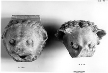 | Description: | Nose and mouth missing and tips of ears. Full thickness of sima preserved at back. Mane rendered on two rows of rather flat stylized tufts except over forehead where there is a third row of small tufts now badly worn. Assigned to either the Temple of Ares or the Temple of Hephaistos. Pentelic marble. | |