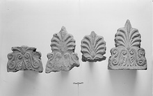 | Description: | Simple relief palmette. Bottom broken away. Coarse red clay, buff slip. | |
