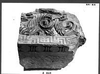 | Description: | Broken at back and at right side. On the base of the sima an elaborate curving floral pattern in high relief, below, on the flat fascia, a maeander in red glaze. On soffit, a bead and reel in red. Red on crowning molding and considerable traces on the background of the relief. Coarse clay, reddish to buff. Cf. A 554, A 1106, A 1257. Middle Stoa series. | |