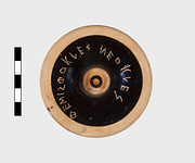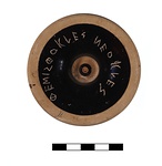 | Description: | Kylix base with black glaze. Inscribed on bottom. Part of stem. | |