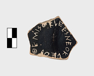 | Description: | Sherd, black glaze. Inscribed on inside. Spelled ΘΕΜΙΣΘΚΛΕΕΣ. | |