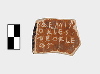 | Description: | Brown sherd inscribed on inside. Inscription in four lines. | |