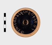 | Description: | Kylix base with black glaze. Portion of stem. Inscribed on bottom. | |