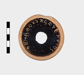 | Description: | Kylix base with black glaze. Inscribed on bottom. | |