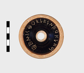 | Description: | Kylix base with black glaze. Inscribed on bottom. | |