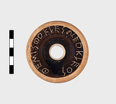 | Description: | Kylix base, black glaze. Inscribed on bottom. | |