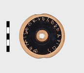 | Description: | Kylix base with black glaze, slightly chipped at edge. Inscribed on bottom. | |