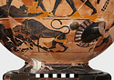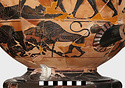 Description:   About two-thirds of large black-figured krater by Exekias.