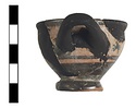 | Description: | Fragments of cup. Black glaze inside. Black and red bands outside. Black decorations on white ground on rim between handles. | |