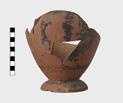 | Description: | Base and lower part preserved. Coarse black figured pot. Band of figures badly worn. | |