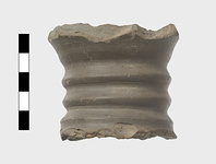 | Description: | Light gray clay; dark gray slightly polished surface; irregular rings; middle Helladic period. | |