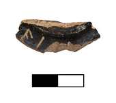 | Description: | Base of kylix (?) with EI scratched on black glaze. | |