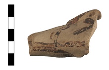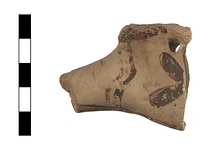Description:   Mycenaean, black design on buff clay; hole through spout, small,hole on side.