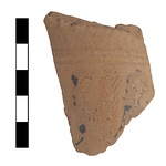 | Description: | Parts of two human figures with palm; linear design above. ADDENDA 2018: Single sherd to a closed shape (probably an oinochoe) with no preserved features. The exterior consists of two horizontal zigzags running below the rim, followed by two narrow bands, and then a wide zone with a pictorial scene of women in procession carrying palms(?). The paint is thick and evenly applied, fired black, but badly flaked. There are no traces of use-wear or burning. | |