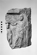 | Description: | Two bearded men wearing mantles. Right hand of taller man resting above head of shorter figure (?). Broken at left side and bottom. | |