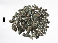 | Description: | Over 150 miniscule fragments and amorphous lumps of bronze or copper representing item of jewelry or personal adornment worn by the deceased during cremation and melted out of shape. Original object unidentifiable. | |
