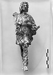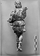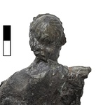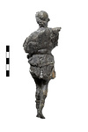 | Description: | Youthfull standing figure, wearing a short chiton, not reaching to the knees, with overfold. The left hand missing, and most of the right arm, also much of the surface which was heavily corroded. The figure stands with the left leg advanced. The left arm is bent with the hand held forwards; the right arm is extended at shoulder height (?). Curly hair, loosely knotted at the back of the neck. | |