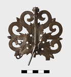 | Description: | Broken off at the bottom; the tip bent over. A large acanthus leaf, from which spring spirals, forming an elaborate open-work palmette-shaped ornament. Coarse incision for details. At the top, a bud-like tip; at the heart of the acanthus, an applied, spirally coiled snake. The back plain, with traces of attachment at back. | |