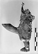 | Description: | Bearded figure wearing a short straight cloak from which the phallos which served as lamp nozzle projects. Filling hole in top of head. Pierced at the temples with a small hole throught which passes a bronze wire knotted together at the top for suspension. From the back of the neck project two lugs, pierced horizontally. | |