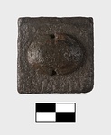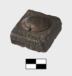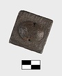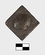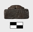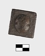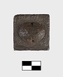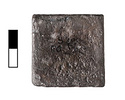 | Description: | Thick square slab of bronze. The metal having a high lead content. On the top added in relief, an oval shield. Inscribed on top lengthwise of the shield and around two vertical faces. | |