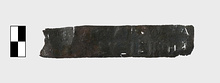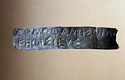 | Description: | Broken off at the right. Very thin. Inscribed in punched letters. | |