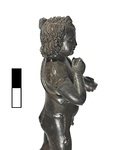 Standing figure, nude save for a goat skin which passes over his left shoulder.