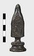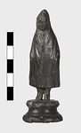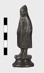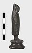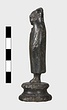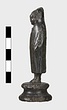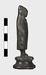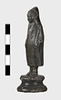 | Description: | Moulded circular base. Small standing figure of boy in shepherd 's cloak. The hood is drawn up over his head and the arms, held at the sides, are indicated under the folds of the cloak. Surafce somewhat corroded. | |