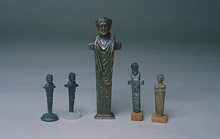 | Description: | Seems quite complete. Made in one piece with circular base. Face plump, beardless; hair short. Cf. B 132 | |
