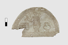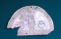 | Description: | End of vaulted box. A roughly semicircular plaque. Within a cross-hatched border a standing figure in Roman official costume. In his left hand he holds a staff or scepter, in ihs outstretched right a helmet. To the left are two large oval objects, shields, to her right a Panathenaic amphora. ADDENDA, (P.T.O.): The figure appears to be an up-dated version of Athena Lemnia. Cf. Emery (1938), I, p. 383, no. 881 and II, pl. 109. Aslo see Weitzmann (1972), Vol. III, p. 27, pl. XIII, no. 16. | |
