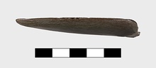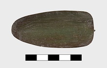 | Description: | Handle entirely missing. A long narrow spoon. Greenish in color. | |