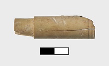 | Description: | One section, broken away on one side. Flanged to receive adjoining section at both ends. White bone. | |