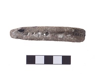 | Description: | Chisel-shaped tool with four holes drilled through it. Late Helladic. | |