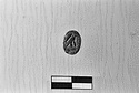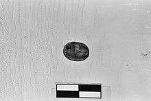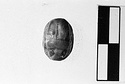 | Description: | Beetle on top; pierced. Incised beneath. Blue faience. | |