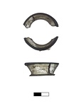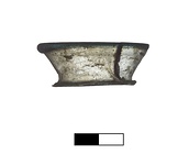 | Description: | Three fragments making up to two, preserved about two thirds of the mouth and short neck, with some of the sharp horizontal spring of the shoulder, of a bottle. | |