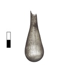 Narrow neck merging into drop-shaped body. Rounded bottom.