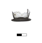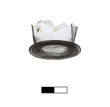 | Description: | Foot and lower body of a beaker (?). Flaring ring foot and nearly vertical side walls pinched in at each of four sides. Very thin fabric of almost colorless glass. | |