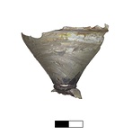 Description:   Mended from two pieces. About half the body and base preserved; the rim broken away, also the lower edge of the foot.
