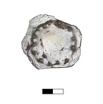 | Description: | The base of an open bowl, and lower part of walls. The foot is a ring of small raised knobs; center of bottom slightly raised inside. Almost colorless glass. Cf. G 67, G 297, G 300, G 338. | |
