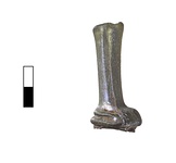Description:   Hollow stem open at smaller end, folded over at other, which is attached to a fragmentary bit of glass separately blown.
