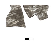 | Description: | Fragment: a) from side and rim of bowl. Groove below plain rim on inside. b) non-joining fragment form rim and upper wall, made up of two pieces, belongs to same bowl. Added from box 129. c) Four non-joining fragments from flat floor (from box 129) belong to same bowl. | |