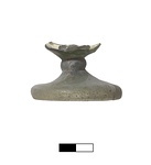 | Description: | Foot preserved. Broken at top. Short stem and widely flaring base with edge turned down for resting surface. Thin green glass. | |