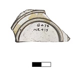 | Description: | Ring base fragment with secondary ring at start of the walls. Slightly iridescent glass. | |