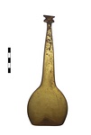 | Description: | Broken at the mouth but complete. Long-necked bottle with flattened body and moulded mouth. Bottom sharply concave. Light brown glass. | |